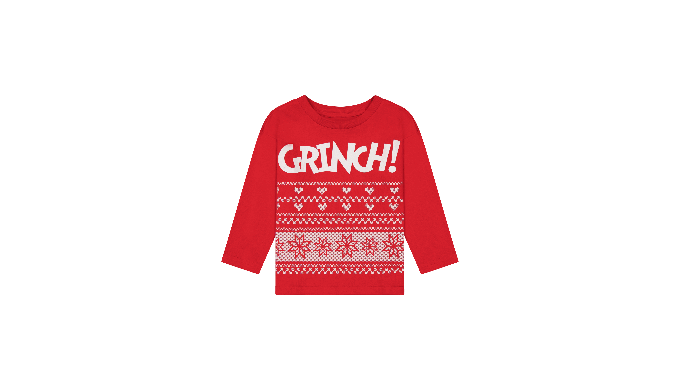 Get your little one ready for a Grinch Christmas in this comfortable toddler unisex long sleeve pullover tee shirt featuring The Grinch! Fabricated in soft jersey, this long sleeve tee shirt has screen printed detail with rib crew neck and sleeve cuffs in a bright red colorway. Available in the following infant sizes: 12M, 18M and toddler sizes 2T, 3T, 4T and 5T. Officially licensed by Dr. Seuss this Grinch Pullover is machine washable for easy care and made to ensure all day comfort. Who can possibly resist a baby Grinch?!