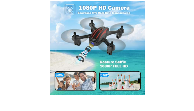 [Drone with 1080P Camera] Capture clear, vibrant aerial shots with the drone\'s 1080p HD camera. Featuring FPV transmission, you can enjoy real-time video feeds directly on your smartphone, making every flight feel like you\'re in the cockpit. With gesture control shooting, taking photos and videos has never been easier—just wave your hand to snap the perfect shot, perfect for capturing family moments, travel adventures, or even stunning landscapes.