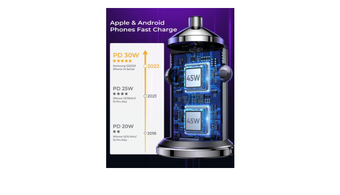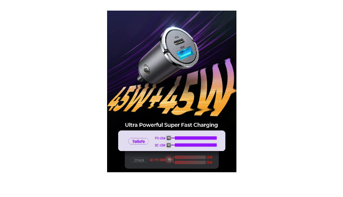 [ Full Speed Charging Two Devices At The Same Time ]: TOLLEFE fast car charger adapter supporting PD 45W(Max) and QC 45W(Max) high output, can fast charge all prevailing phones and E-devices. NOTE: Supports simultaneous fast charging of 2 devices, but does NOT support simultaneous super-fast charging.
