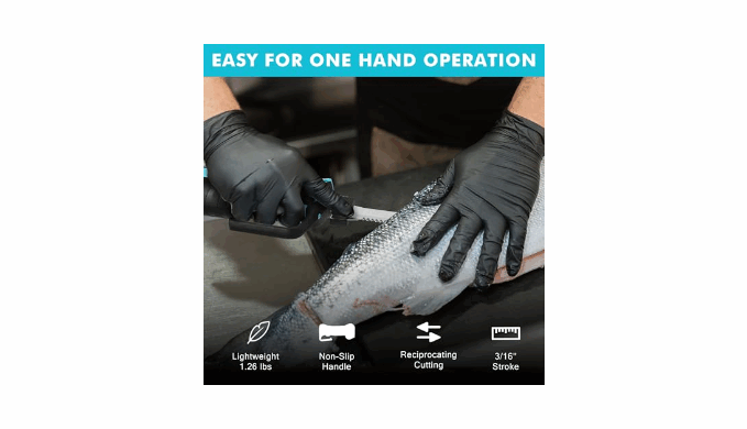 Smooth Cutting - Designed for effortless use, this rechargeable fillet knife has a motor of around 2800 SPM and a balanced stroke that keeps the cutting action controlled. During various filleting fish tasks, this battery fillet knife moves smoothly. The safety lock feature ensures the blades stay securely in place during use, preventing accidental detachment