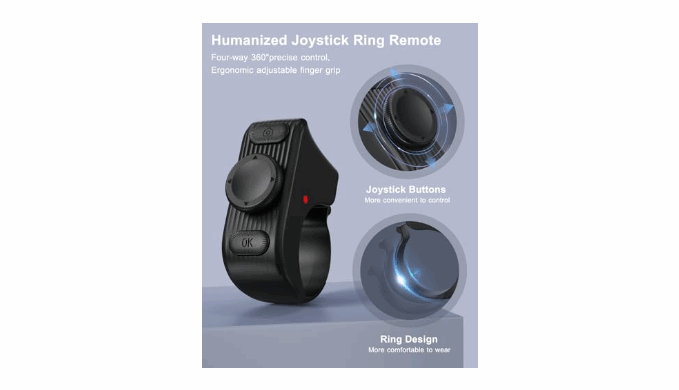 Ergonomic & Comfortable Design: Our innovative TK fingertip wireless bluetooth remote control features a joystick direction key that allows you to effortlessly slide up, down, left, and right. The ergonomic, adjustable ring ensures a perfect fit for any finger size, providing comfort during long-term use without breaking or losing shape