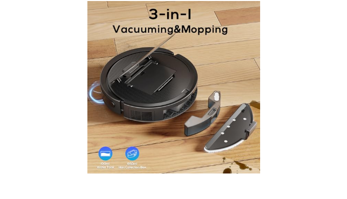 【Super thin body design】 The Dyrabitick V3 automatic vacuum robot stands at only 2.99 inches in height and can climb at angles up to 15°, easily crossing thresholds or carpets up to 0.6 inches high, which is Equipped with 650ml large dust box and 100ml water tank with 3 levels of adjustment