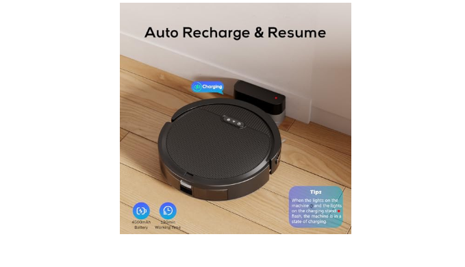 【6 cleaning modes】 ①Auto Cleaning ②Spot cleaning ③Edge cleaning ④Schedule cleaning ⑤Manual Control ⑥Zigzag cleaning.The Dyrabitick V3 robot vacuum cleaner comes with a 4500 mAh lithium-ion battery and has a runtime of up to 120 minutes in multiple modes