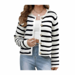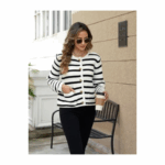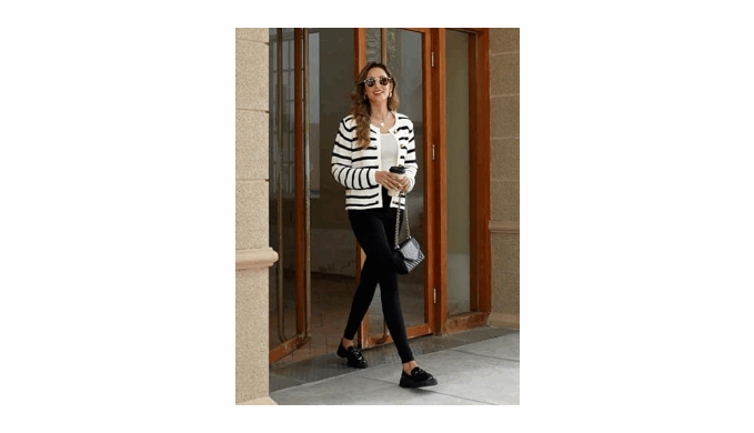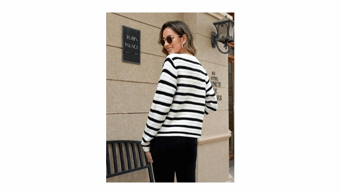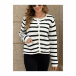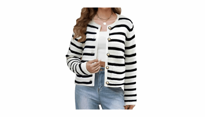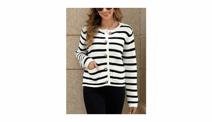 Design: This long-sleeved cardigan is a fashion classic with its solid/horizontal striped pattern. It has a straight cut and a crew neck, It fastens with black and gold-tone buttons, and the killer detail is that it has pockets! Wear it with casual or smart outfits, it\'ll always be perfect!