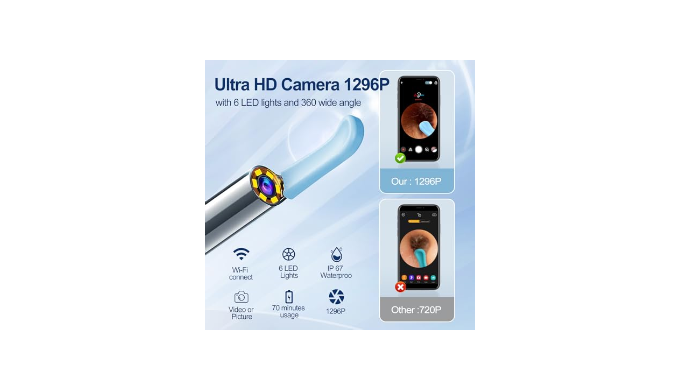 [1296P HD Camera]:ear wax removal tool camera is equipped with 360°wide-angle professional grade lens which provides a large coverage view. 6 LED lights will greatly enhance the brightness and sharpness of the image in ear canal and remove earwax more completely and safely. With upgraded 1296P full HD resolution can capture more realistic images or record stunning videos.
