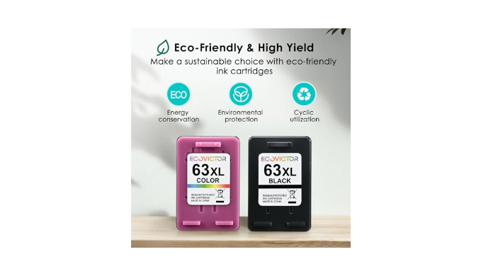 Eco-Friendly Printing Excellence: All Eco Victor remanufactured ink cartridges 63 are made from durable, eco-friendly materials. They offer higher capacity and premium ink quality through rigorous cleaning, refurbishing, and refilling. Certified Climate Pledge Friendly and meeting FSC standards, these cartridges support sustainability. The 63 black ink cartridge prints sharp, clear black text for your documents, and the 63 color ink cartridge produces vibrant, natural color photos.