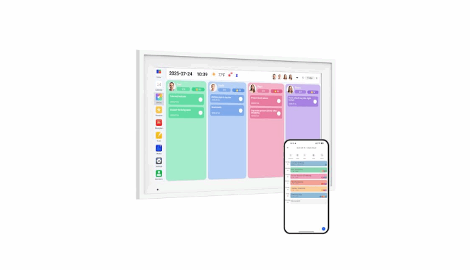 Easy Setup and Stay Connected: Easily mountable or desktop-ready. Connect to the Aimor app for remote schedule/chore syncing, photo sharing, and real-time updates to keep your family’s daily life organized and connected