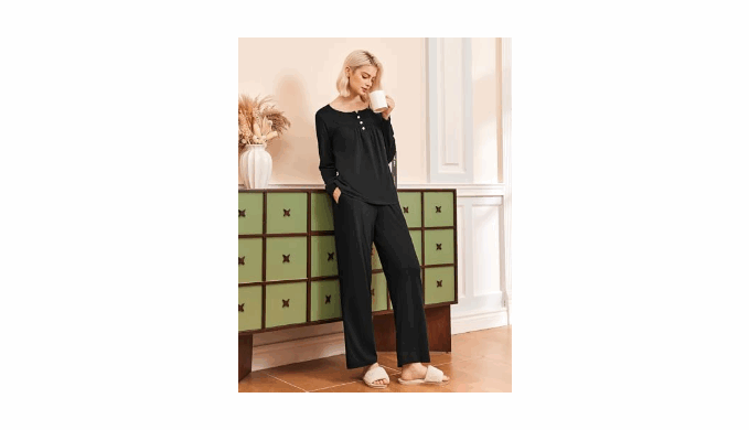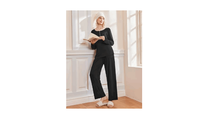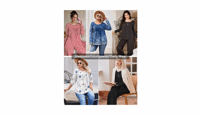 【Stylish Design】Casual 2 piece outfits, long sleeve tops, soft nightwear, henley neck and front pleated detailed design,hidden belly fat. Elastic waistband long pants with practical pockets, casual loose comfy, graceful and easeful