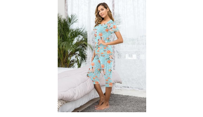 【Size&Color】Accommodates almost body shapes. But before you buy the pajamas set, please check the measurement chart. An assortment of colors and prints come together to offer you an abundance of options. From solid to print, there is a shirt-capri set for every personality.