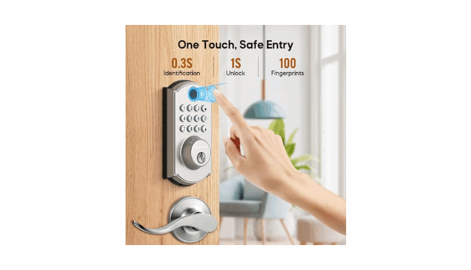 3-in-1 Keyless Unlock: Our fingerprint door lock with 2 Lever handles supports up to 100 fingerprints and 50 PIN codes, perfect for large families or shared spaces. It includes 2 backup keys for emergencies, and no app or Wi-Fi is needed—your finger is the key to unlocking