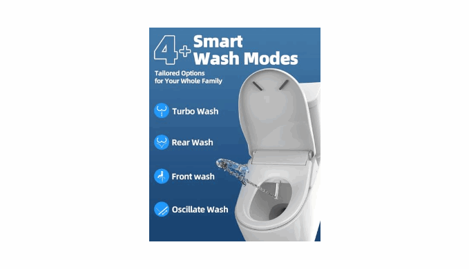 Versatile Cleaning Options: The elongated toilet seat can be chosen from front and rear wash, feminine wash, child wash, and a power wash for effective defecation. Tailored to meet diverse needs, this heated bidet ensures a comfortable and personalized cleansing experience for you.