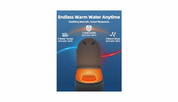 Instant Water Heating: Enjoy instant and unlimited warm water, and 3-level adjustable warm air drying of this toilet bidet, surpassing traditional toilet paper for a refreshing experience. Customize your spa-like comfort with 3-level adjustable water temperature and pressure, and enjoy effortless cleanliness, gentle, skin-friendly, and supreme comfort.