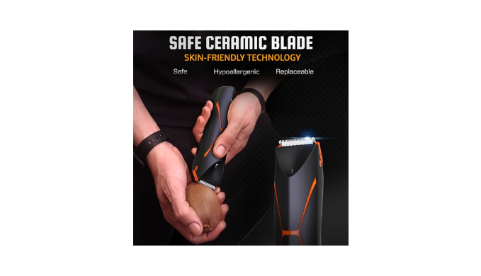 Precision Trimming at Your Fingertips: body hair trimmer for men is meticulously engineered for detailed grooming, expertly navigating the contours of your body to trim all areas with precision. From the sensitive regions of pubic hair to the broad expanses of your leg, this body trimmer for men is up to the task. mens grooming trimmer\'s high-speed 7000 RPM motor doesn\'t just cut; men trimmer powers through hair with the finesse of a high-performance machine, while the ultra-sharp ceramic blades offer a close, comfortable shave that\'s kind to your skin. Experience the difference of a tool that\'s as powerful as it is gentle.