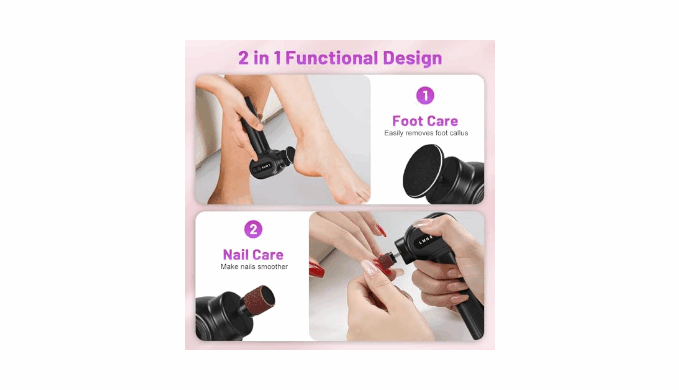 2-in-1 Electric Foot File: The electric callus remover has two different types of grinding heads, meet the care needs of feet and hand, save your time and money, with 10 sanding discs and 20 sanding rings, ideal for polishing nail and reducing calluses, make yourself more beautiful