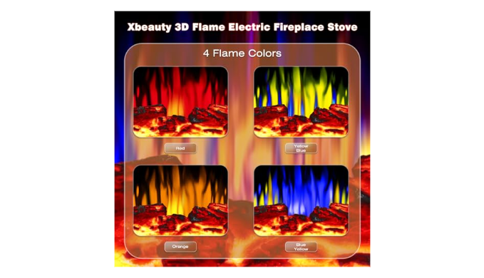 Flame Speed & Brightness are Adjusted:Flame effects can be separated from heat;The flame effect can be controlled independently without heating;Four color-changing flames that change depending on your mood,and the flame dimmer controls the brightness of the flame effect to help you set up when you do not need a heater.