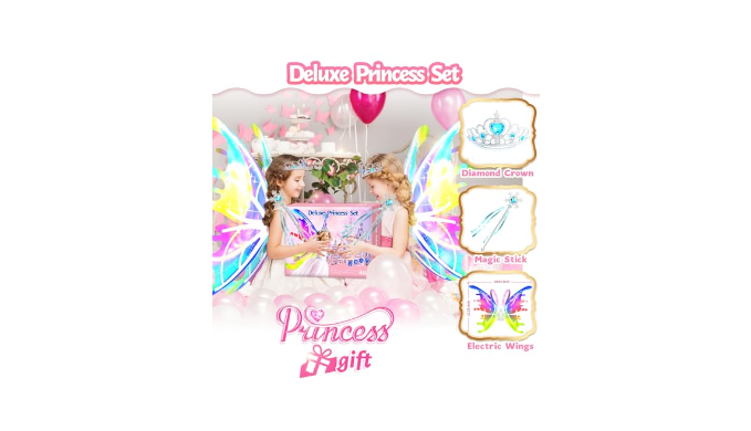 【Deluxe Princess Set】Come with crystal princess wand and crown - A princess & fairy role-play games that fulfill your little girl\\\'s fantasy of being princess or fairy! Transport your kids to a world of fantasy and wonder. Lovely princess dress up and princess toys for imaginative play, themed parties or simply as room decor. Perfect 3 4 5 6 7 year old girl toys girl gifts. Cool toys for girls 4-6 5-7 6-8.