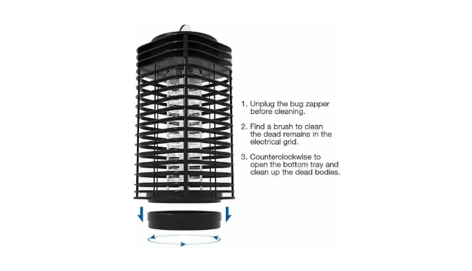 Easy to clean and beautiful: Our mosquito killer lamp has a hidden tray at the bottom of the device, collects the dead insects at the bottom of the tray that can be effortlessly removed for cleaning. This mosquito killer can be used in the kitchen, bedroom, living room, dining room, and more! (away from rain and moisture).