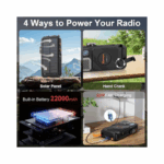 22000mAh Large Battery Capacity: The built-in 22000mAh non-removable rechargeable battery can not only power the weather radio, but also charge your mobile devices in an emergency. With only a single charge, the solar crank radio can play for up to 190 hrs, the flashlight can last for 65 hrs, reducing the need for frequent charging and providing longer reliability.