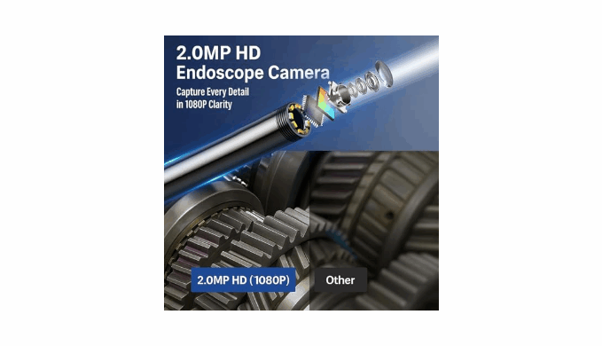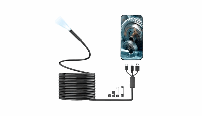 [Wide Application]: This lighted endoscope camera is your go-to tool in a variety of situations. Whether it\'s in a car or around an engine, internal inspection of pipes, or house mold and wire inspection, it can do the job. Its adjustable brightness feature ensures you can capture clear images even in low-light environments.