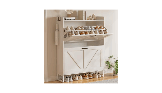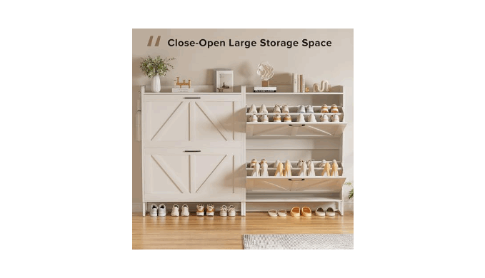 【Easy Access & Space-Saving】Measuring 40×31×9 inches, this slim shoe cabinet is ideal for narrow entryways, hallways, and porches. The flip-top drawer design makes it easier to access shoes compared to traditional cabinet doors, while also providing effective dust protection and keeping shoes safe from pets.