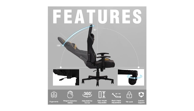 Security Assurance: Our gaming chair has passed the SGS test for the gas lift and BIFMA test for the 5-star base. The max weight capacity is 350lbs. We have thoughtfully included a headrest and lumbar support for you. When you sit for a long time, your hips, waist and back are less prone to aches and pains.