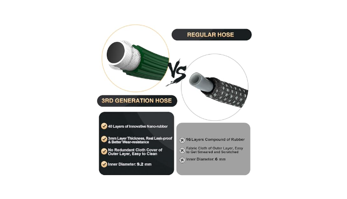 NEW Innovative Materials: 100 feet retractable garden hose is built to last. Tnner layer boasts high-density natural rubber and burst-resistant polyester woven fiber yarn, ensuring maximum durability and flexibility. The outer layer features dirt- and abrasion-resistant anti-aging nano-material, making it easy to clean and preventing breakage and leakage, even when faced with sharp objects.