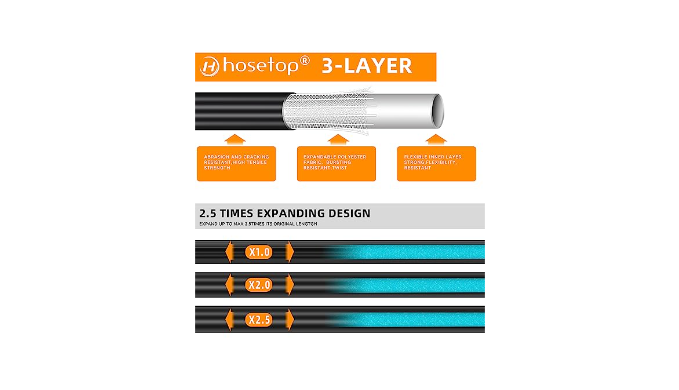 2.5 times Expandable: Above 60 PSI water pressure, the water hose can automatically expand up to 100FT from its original length, making it easy to reach every corner of your garden or yard. The expandable garden hose will also quickly shrink back to its original size when the water is turned off for convenient storage.