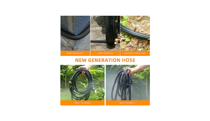 New High-Density Materials---Made with high-quality innovative rubber and polymer hybrid materials, our garden hose is more more durable and longer service life.It can maintain flexibility in work without tying or entanglement, improving your watering efficiency and fun.whether you water your garden or wash car.