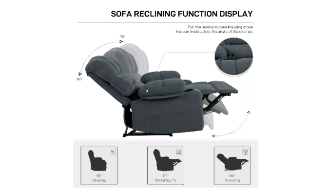 Multi-Reclining Mode: The recliner is designed with a strong-bracing back that can be adjusted from 90° to 150° for reading, watching videos, and napping. You can enjoy your favorite position in this adjustable recliner, whether you prefer sitting up straight, with your legs up, or lying down. With a simple reclining pull tab, the reclining chair’s footstool will pop out thereupon.