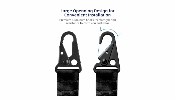360-Degree Rotating Swivels: The aluminum push-button swivels provide 360-degree rotation for enhanced flexibility and smooth transitions. The quick-release feature ensures reliable attachment and easy removal, allowing efficient use in dynamic situations