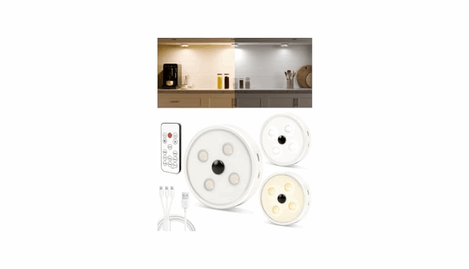 【Broad Application】 -- Size: 1.2 x 3.3 x 3.3 inch, compact and handheld, it is suitable for all kitchen cabinets size. These puck lights battery operated are ideal as closet lights, under cabinet lights,wine cabinet lights, display lights, office lights, under counter lights for kitchen. Adding this hands-free rechargeable cabinet lighting to your home.