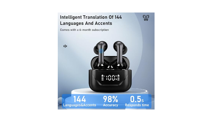 144 Languages and Accents: Break down language barriers with the translation earbuds real time, which deliver up to 98% accuracy and a response time of just 0.5S. With 4 translation modes (Silent Mode/Earphone Mode/Speaker Mode/Two Earphone Mode) that translate 144 languages and accents in real-time, these ai translator earbuds are perfect for travel, business and everyday communication. ( Note: Includes a 6-month app subscription)