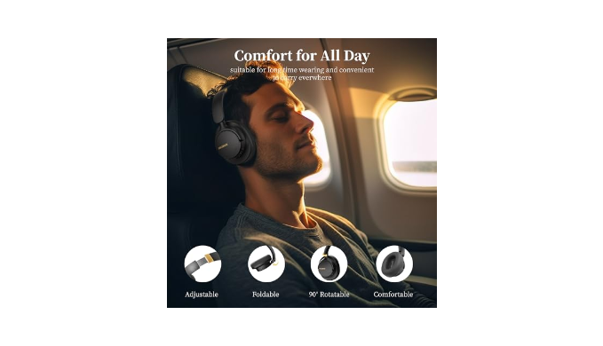 [Adjustable Headband & Foldable Ear Cushion] Noise canceling headphones are made of upgrade materials with an upscale look and premium black and gold colour scheme. Ultra-soft memory foam ear cups and adjustable headband are ergonomically designed to gently but securely fit your ears for a customised, comfortable fit all day long, allowing you to enjoy your music without any discomfort. Headphones with microphone also accommodate users of all head sizes