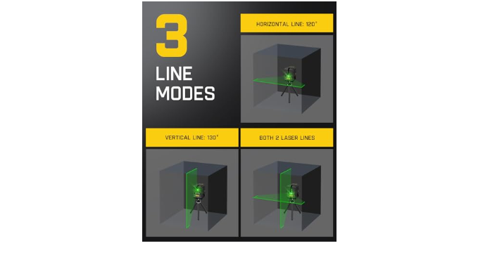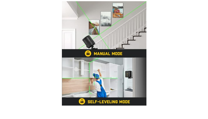 [Two Modes & Pulse Mode] - In self-leveling mode, this laser auto-levels on surfaces within tilts of 3°. When the surface exceeds this limit, the laser intelligently signals the need for adjustment by continuously flashing. In manual mode, it can be securely locked into alignment at any desired angle. In outdoor or well-lit environments, simply activate the pulse mode when using with a receiver (not included), extending the working range to 200 ft.