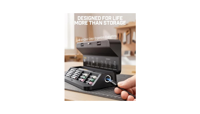 All‑in‑One Storage: The mini rotary tool kit includes a premium flip‑lid storage case with magnetic compartments to keep accessories neatly organized, plus dedicated space for bits, and in-case charging for an efficient, clutter-free workflow