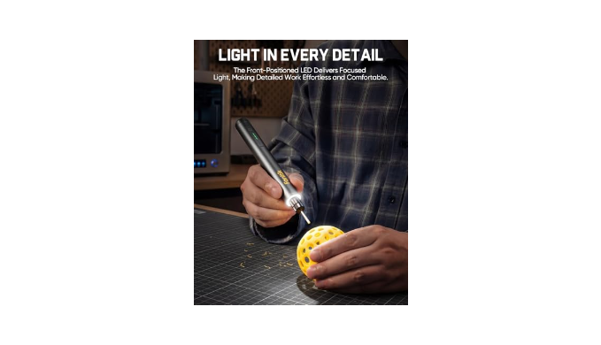 Seamless Pressure‑Sensitive Speed Control: Designed as a slim engraving pen, the lightweight aluminum body(0.22 lb) fits naturally in hand for extended use. Pressure-responsive speed control supports smoother operation and improved handling for fine engraving and detail work