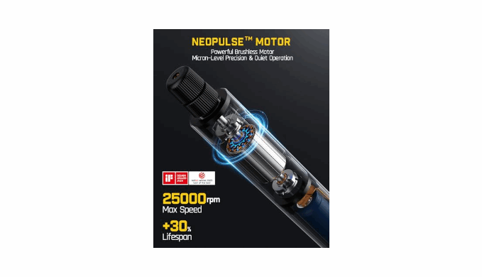 Whisper-Powerful: The Fanttik F2 Master features a brushless hollow cup motor that reduces noise by 30% compared to standard motors. Maximum speed: 25,000 RPM, it delivers stronger performance and less heat. 5 adjustable speed settings make it easy to handle various precision tasks