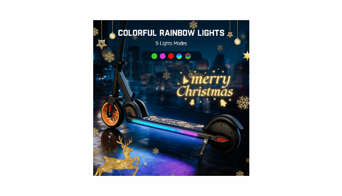 Experience the perfect blend of fun and safety with our kids’ electric scooter, designed to light up your child’s adventures. Equipped with dazzling rainbow LED lights around the pedals, this scooter ensures vibrant rides while enhancing night-time visibility