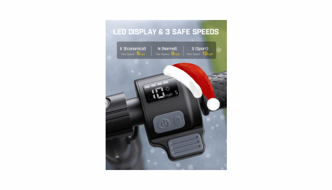 for added safety. With three adjustable speed settings (5 mph, 8 mph, 10 mph) and a user-friendly LED display showing battery life, pedal mode, and speed, it’s perfect for children aged 8-12.