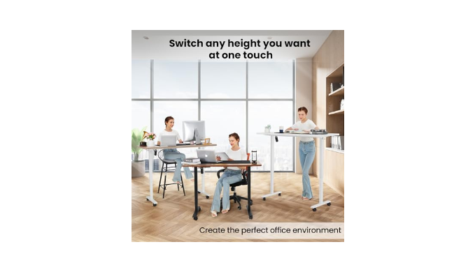 【Mobility with Lockable Casters】This electric standing desk with wheels includes smooth-rolling casters that allow you to easily move it across rooms or adjust your workspace layout. The lockable design ensures the desk stays securely in place, making it a versatile choice for adjustable office desks, mobile standing desks, or home office desks.