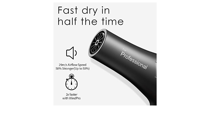 2X Fast Drying WIND-PRO Tech: Engineered with powerful WINDPRO airflow technology, the blow dryer\'s wind speed upgrades to 29m/s, 2 times faster than regular hairdryers, reducing drying time in half. Precise drying with no extreme heat damage.
