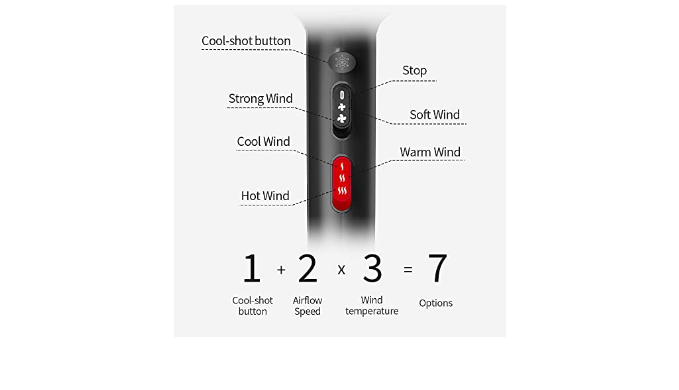 7 Drying Modes: 3 precise heat settings(high/medium/low), 2 speed settings (mild/fast), and 1 Cool Button, Faszin hair dryer lets you find the flawless drying combination for different hair styles and types.