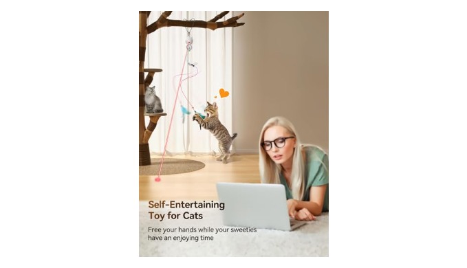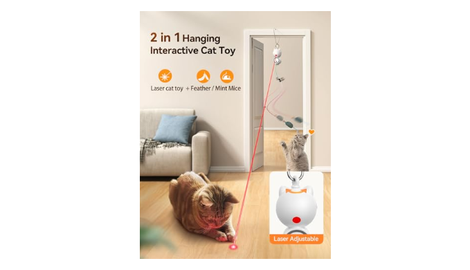 Two Exciting Modes: Mode 1 is red dot and feather/mouse start-up together; Mode 2 is only feather/mouse. Every 5 minutes of operation, the toy will automatically pause for 4 hours (which can be restarted by pulling the rope), and then it resumes for another 5-minute session