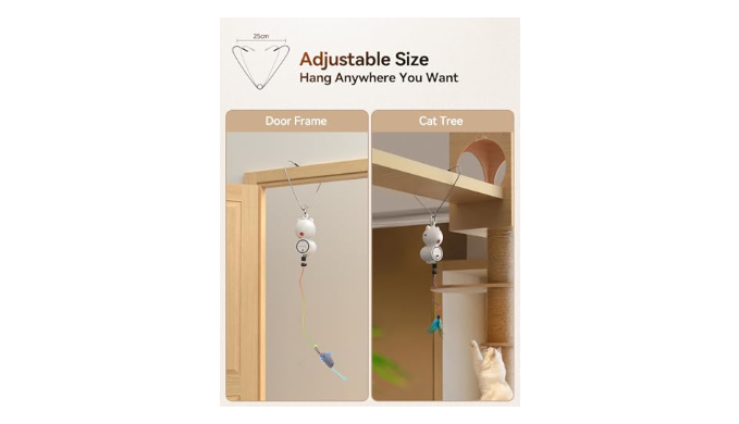 Sturdily Hung Anywhere: This spring clip of the cat toy can be easily adjusted to a max of 25cm. Cat toys for indoor cats can be clipped or hung on door, arche, cat tree, and window frame