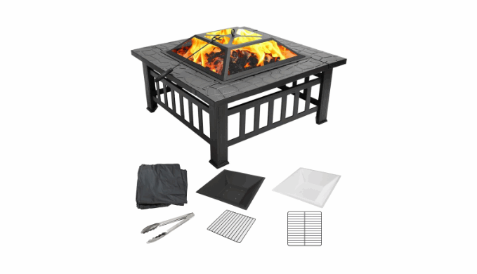 UHOMEPRO Fire Pit, This outdoor square fire pit is constructed of heavy-duty iron mesh and frame. The garden stove brazier is built in a square shape for stability. This square fire pit features with mesh lid to prevent burning embers blowing. Also, included accessories are provided for convenient operation. With this fire pit, you will get warm even in the chilly winter days. No more hesitation!