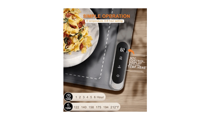Safety Design: This warming mat for food was fully secured by silicone with non-slip feet on back,offering safety use, heat dissipation, durability, and protect your counter top.