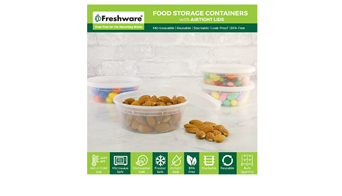 ✅ LEAK-PROOF FOOD STORAGE CONTAINERS: Freshware deli containers will keep your food in place without ever creating a mess. Lids are airtight and leak proof. Great for both liquid and solid food. Enjoy your favorite food on the go!