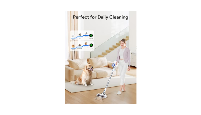 【Powerful & Quiet Motor】The motor of the upgraded cordless vacuum cleaner ensures strong suction power at 23kpa, while operating quietly for a pleasant cleaning experience. The vacuum cleaner can easily handle dust, crumbs, pet hair, cat litter, dog food, etc., suitable for all kinds of surface cleaning needs