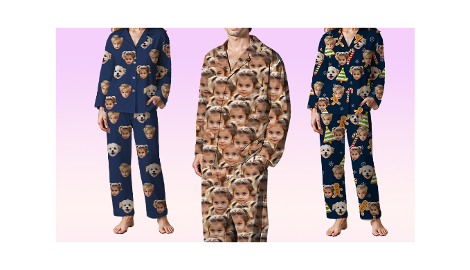 - Full Custom Photo Pajama Set: Get a complete set of personalized pajamas, including both the top and the pants, featuring your chosen photos or designs.