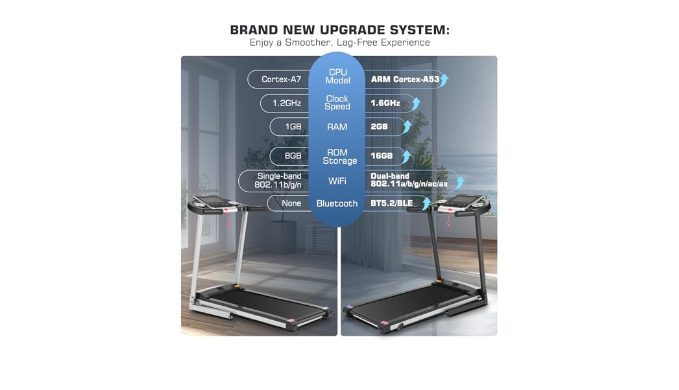 ➤2024 System Upgrade and Enhanced Storage: This high-performance folding treadmill has been upgraded with additional RAM and storage, ensuring smoother system operation and an improved user experience. Whether accessing built-in apps or monitoring real-time data, you can enjoy seamless and uninterrupted operation.
